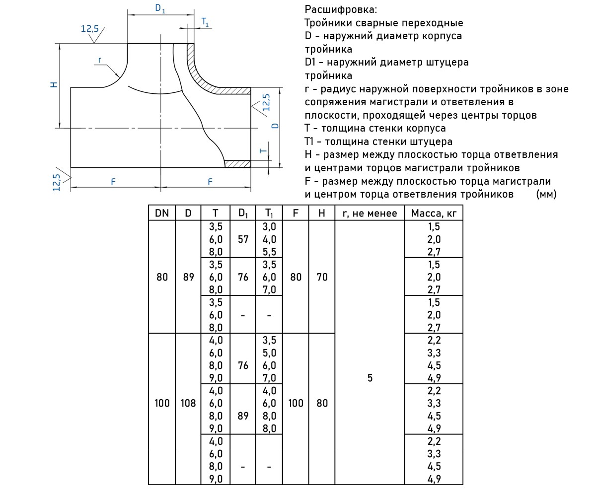 Тройник стальной переходный 108х6-89х6-09Г2С ГОСТ 17376-2001