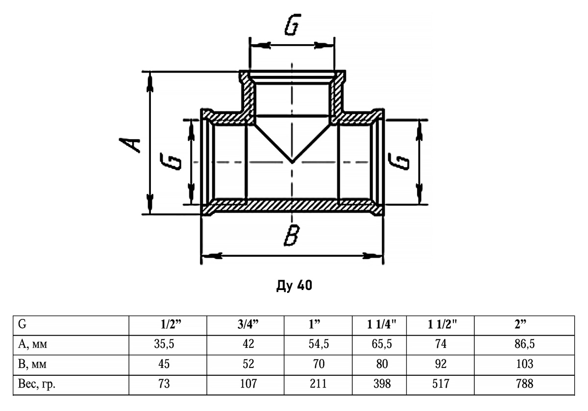 Тройник VALFEX VF.130 ВР 1 1/2"x1 1/2"x1 1/2" Ду 40 Ру 40 латунный