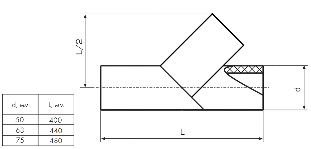 Тройник 50 мм SDR13,6 45° ПЭ100 равнопроходный сварной сегментный ПНД