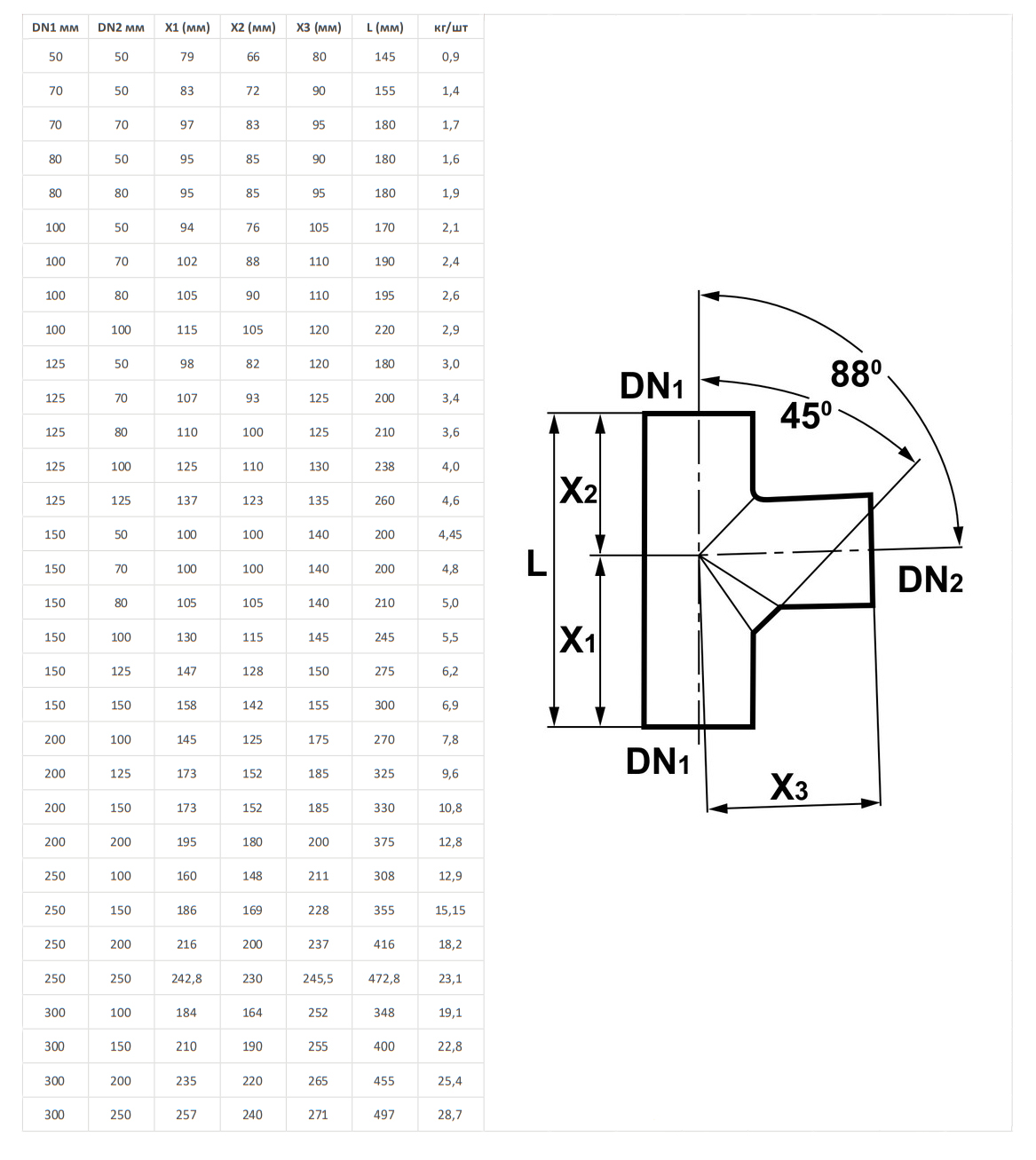 | Диаметр ответвления | |
