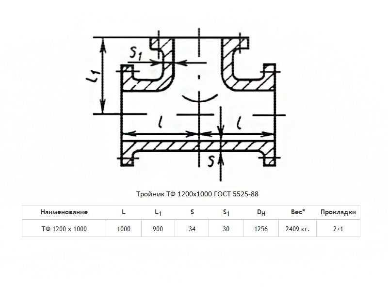 Тройник ТФ Ду 1200х1000 ВЧШГ ГОСТ 5525-88 чугунный фланцевый