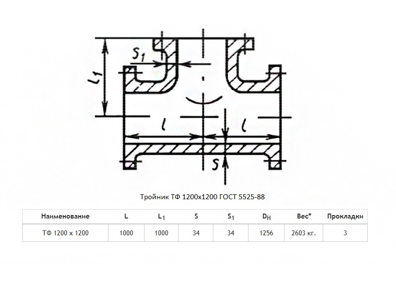 Тройник ТФ Ду 1200х1200 ВЧШГ ГОСТ 5525-88 чугунный фланцевый