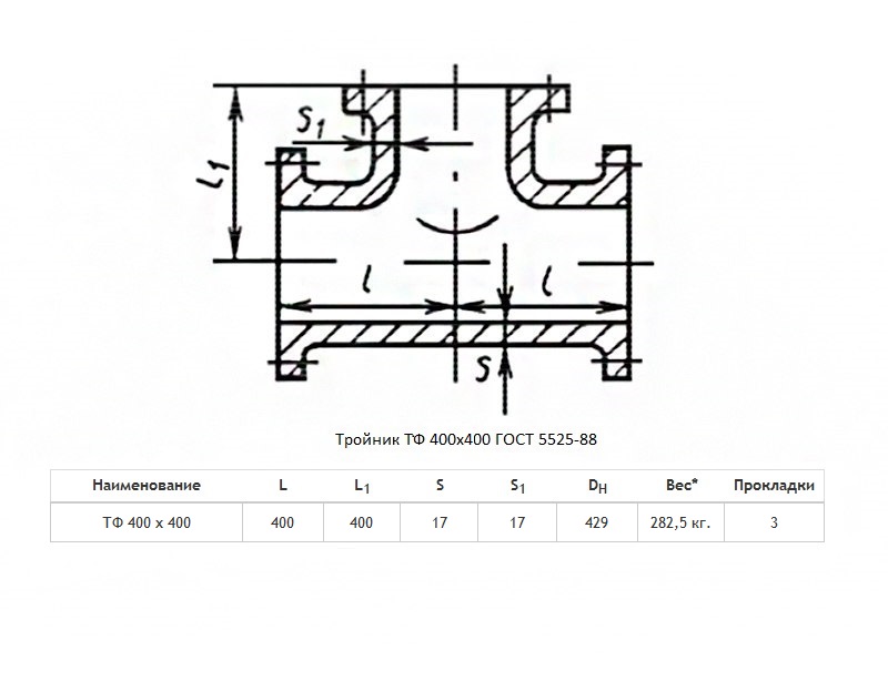 Тройник ТФ Ду 400х400 ВЧШГ ГОСТ 5525-88 чугунный фланцевый