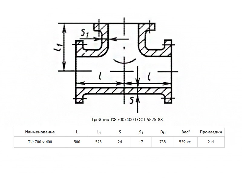 Тройник ТФ Ду 700х400 ВЧШГ ГОСТ 5525-88 чугунный фланцевый