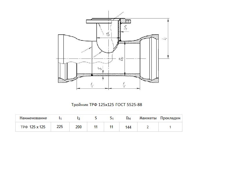 Тройник ТРФ Ду 125х125 ВЧШГ ГОСТ 5525-88 чугунный раструб-фланец