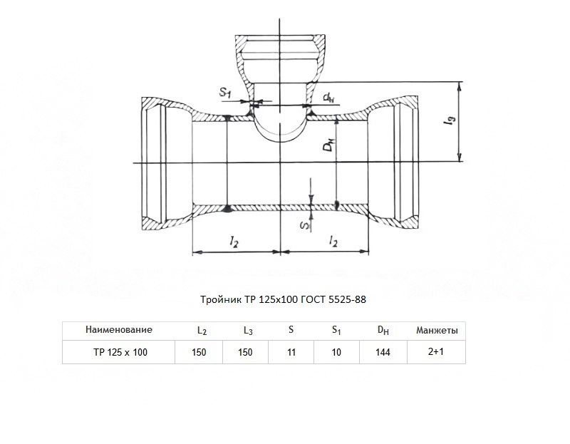Тройник ТР Ду 125х100 ВЧШГ ГОСТ 5525-88 чугунный раструбный