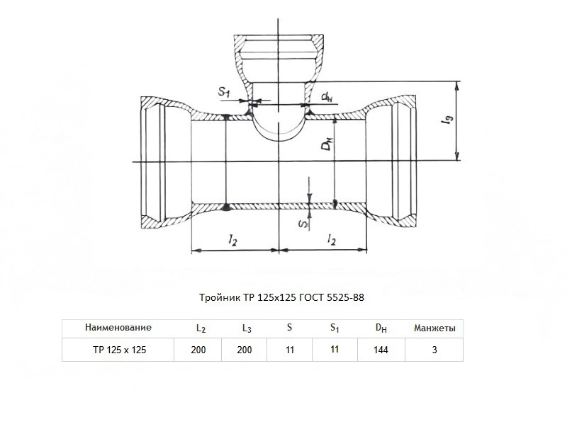 Тройник ТР Ду 125х125 ВЧШГ ГОСТ 5525-88 чугунный раструбный