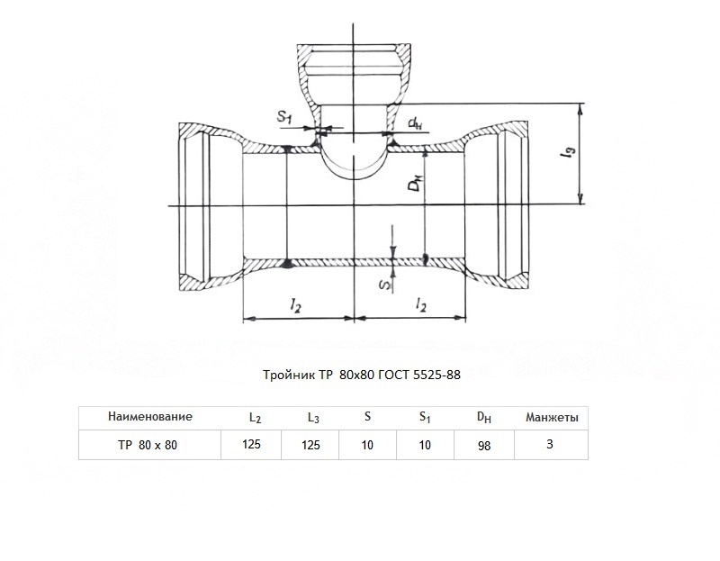 Тройник ТР Ду 80х80 ВЧШГ ГОСТ 5525-88 чугунный раструбный