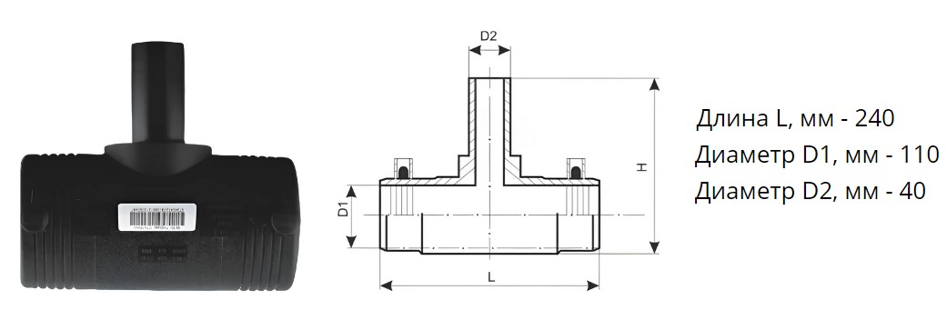 Тройник э/с 110х40 мм SDR 11 ПЭ100 редукционный электросварной