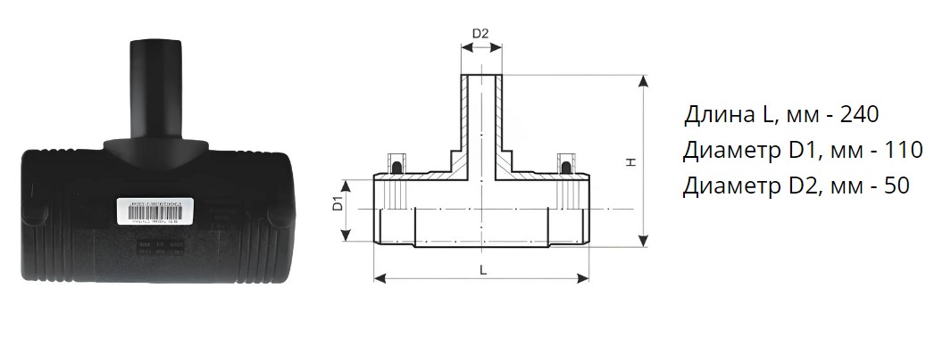 Тройник э/с 110х50 мм SDR 11 ПЭ100 редукционный электросварной
