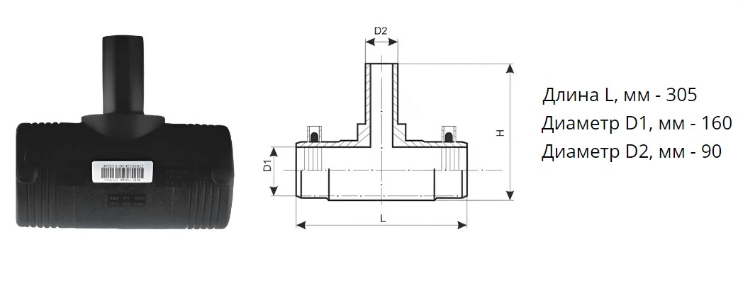 Тройник э/с 160х90 мм SDR 11 ПЭ100 редукционный электросварной