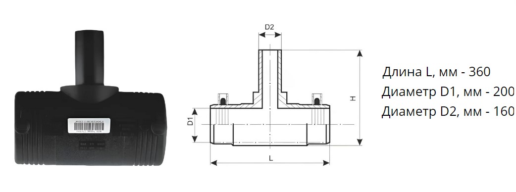 Тройник э/с 200х160 мм SDR 11 ПЭ100 редукционный электросварной