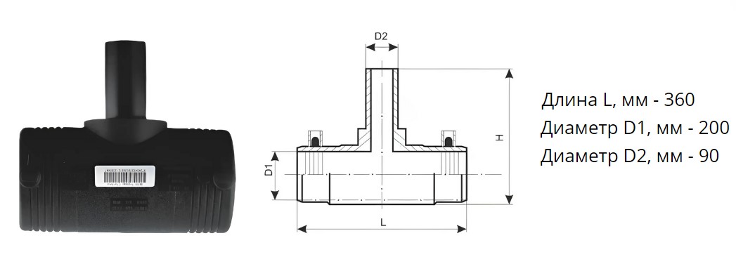 Тройник э/с 200х90 мм SDR 11 ПЭ100 редукционный электросварной