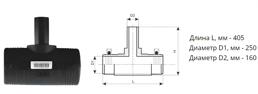 Тройник э/с 250х160 мм SDR 11 ПЭ100 редукционный электросварной