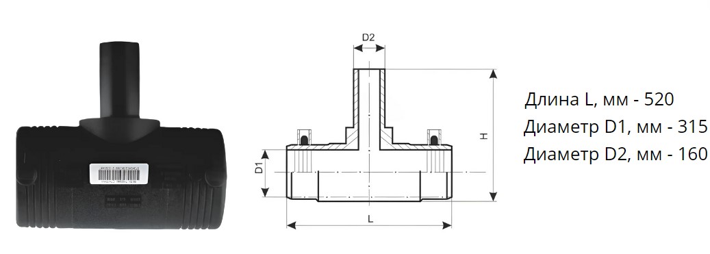 Тройник э/с 315х160 мм SDR 11 ПЭ100 редукционный электросварной