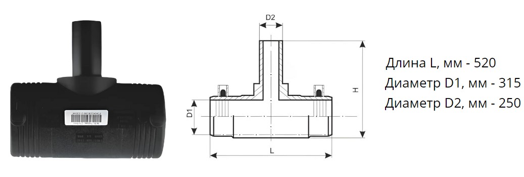 Тройник э/с 315х250 мм SDR 11 ПЭ100 редукционный электросварной