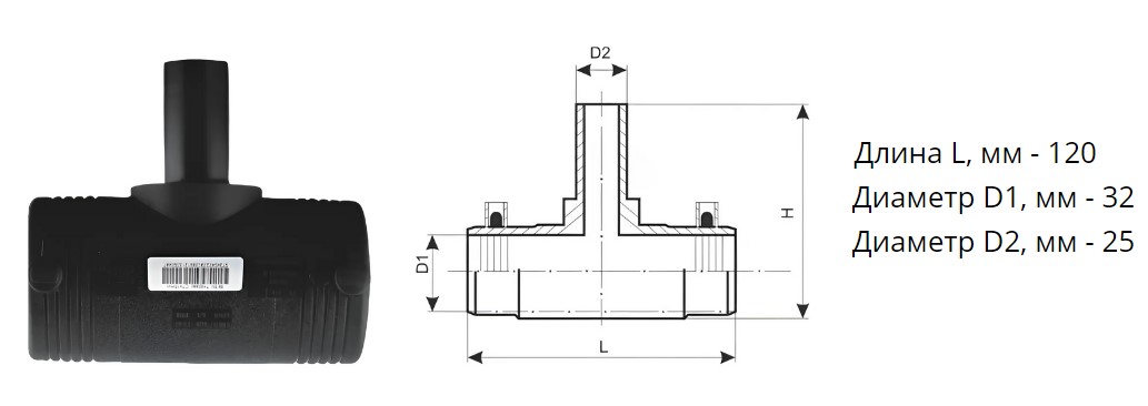 Тройник э/с 32х25 мм SDR 11 ПЭ100 редукционный электросварной