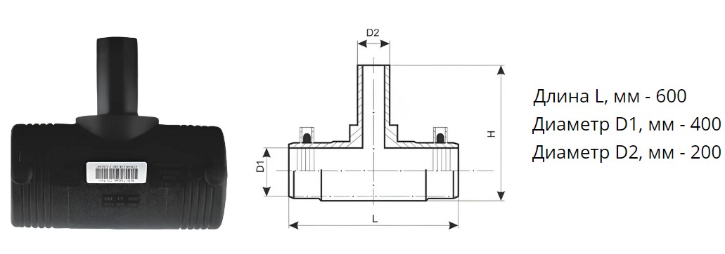 Тройник э/с 400х200 мм SDR 11 ПЭ100 редукционный электросварной