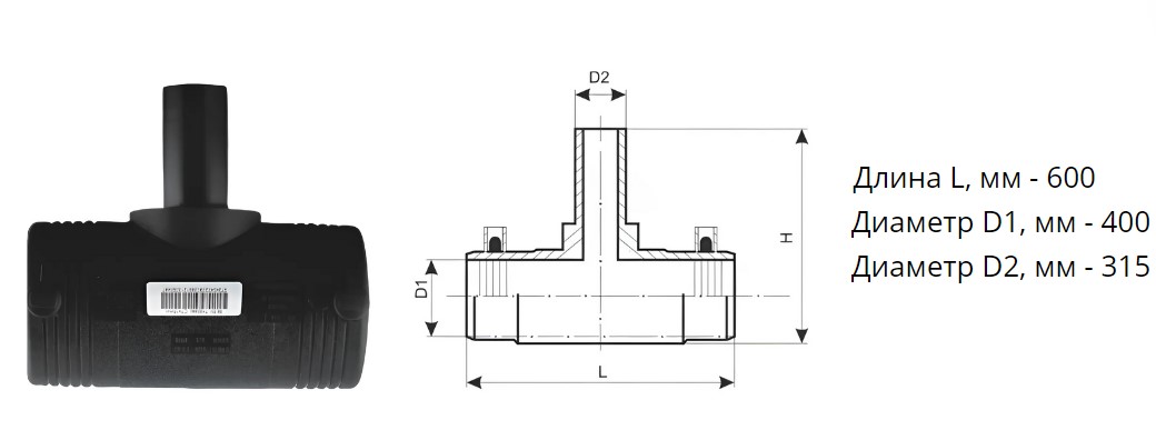 Тройник э/с 400х315 мм SDR 11 ПЭ100 редукционный электросварной
