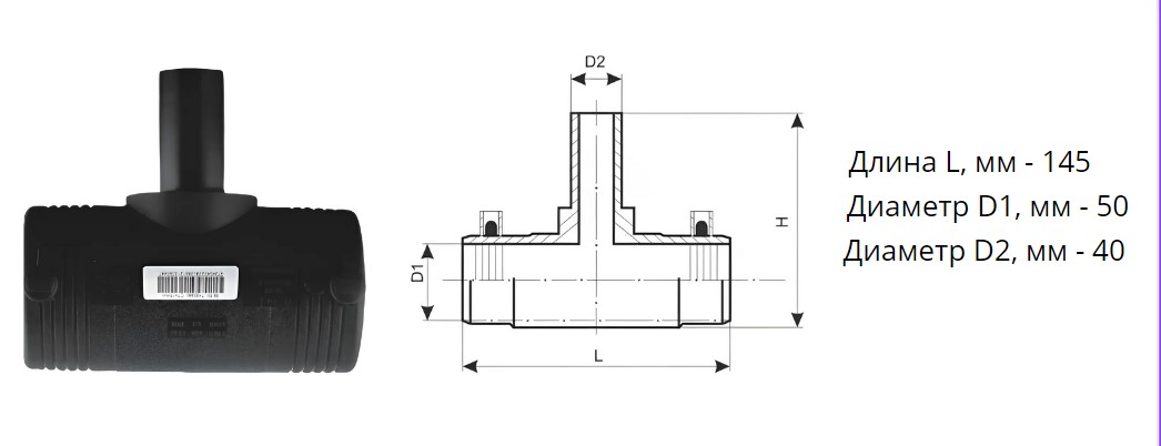 Тройник э/с 50х40 мм SDR 11 ПЭ100 редукционный электросварной