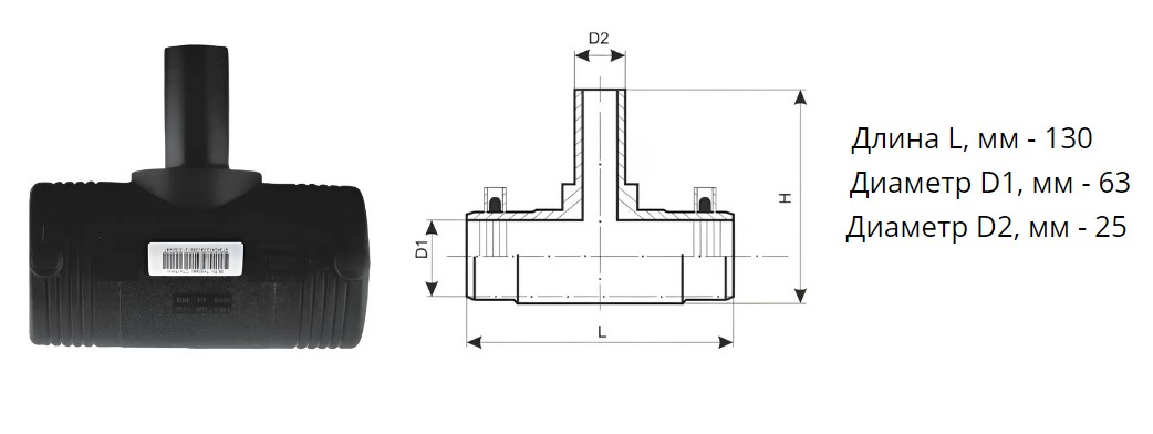 Тройник э/с 63х25 мм SDR 11 ПЭ100 редукционный электросварной
