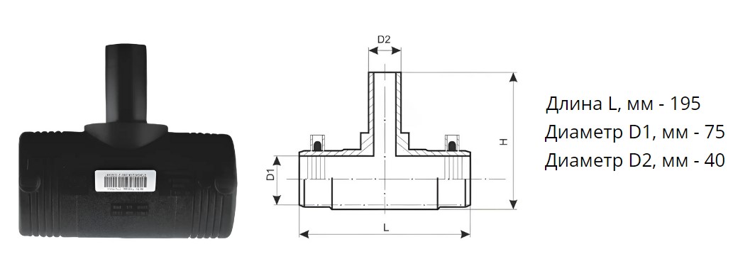 Тройник э/с 75х40 мм SDR 11 ПЭ100 редукционный электросварной
