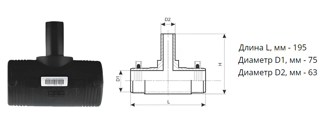 Тройник э/с 75х63 мм SDR 11 ПЭ100 редукционный электросварной