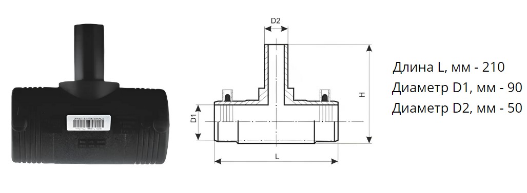 Тройник э/с 90х50 мм SDR 11 ПЭ100 редукционный электросварной