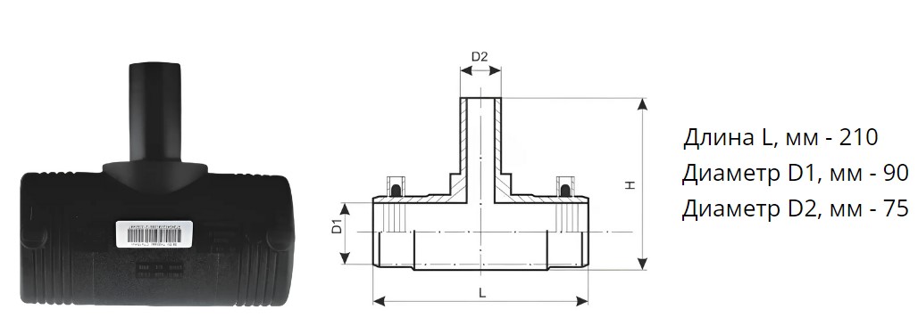 Тройник э/с 90х75 мм SDR 11 ПЭ100 редукционный электросварной