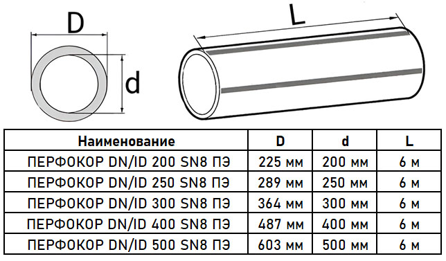 МаркировкаПЕРФОКОР DN/ID 500 SN24 ПЭ