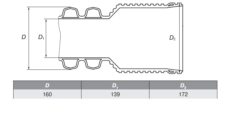 Труба ПП гофрированная ИКАПЛАСТ DN/OD 160 SN 16