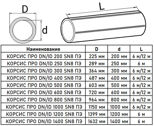 МаркировкаКОРСИС ПРО DN/ID 1400 SN8 ПЭ