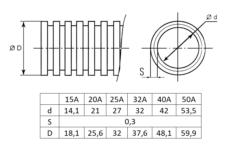 Предельное отклонение размера трубы± 0,3 мм