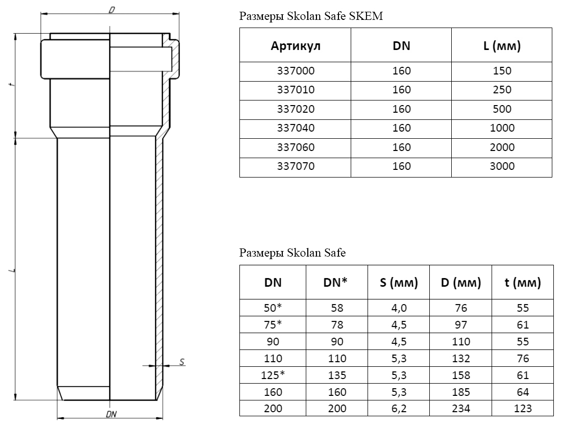Труба канализационная бесшумная PP-MD Ostendorf Skolan Safe SKEM DN 160х5,3х150
