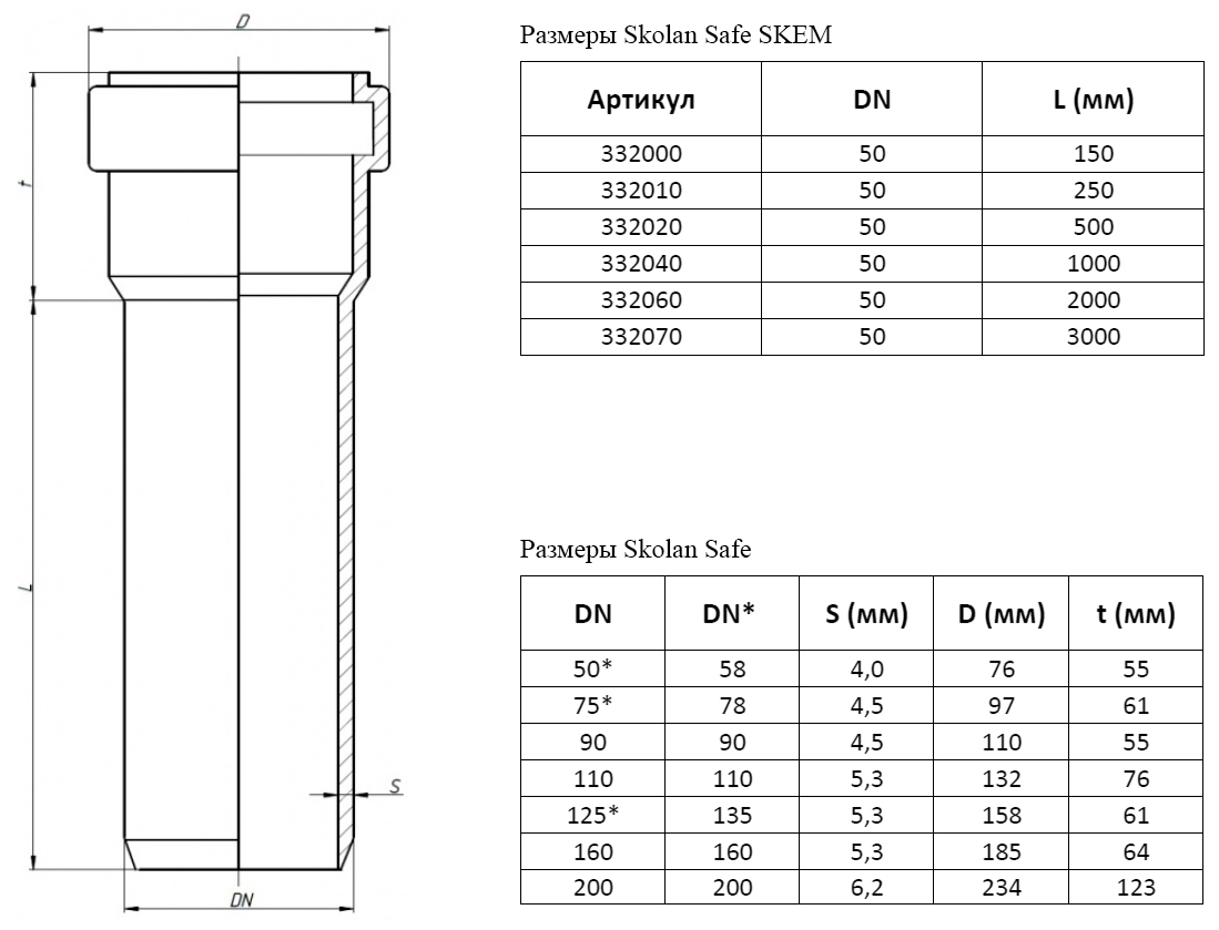 Труба канализационная бесшумная PP-MD Ostendorf Skolan Safe SKEM DN 50х4,0х250