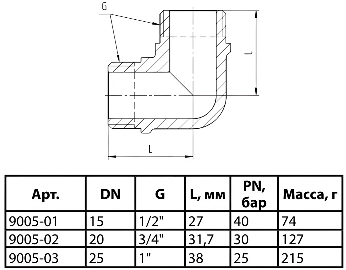 Тип фитингаУгольник