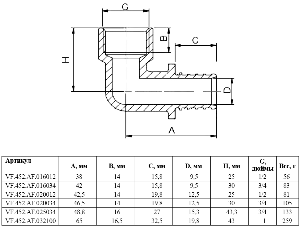 | Тип фитинга | |