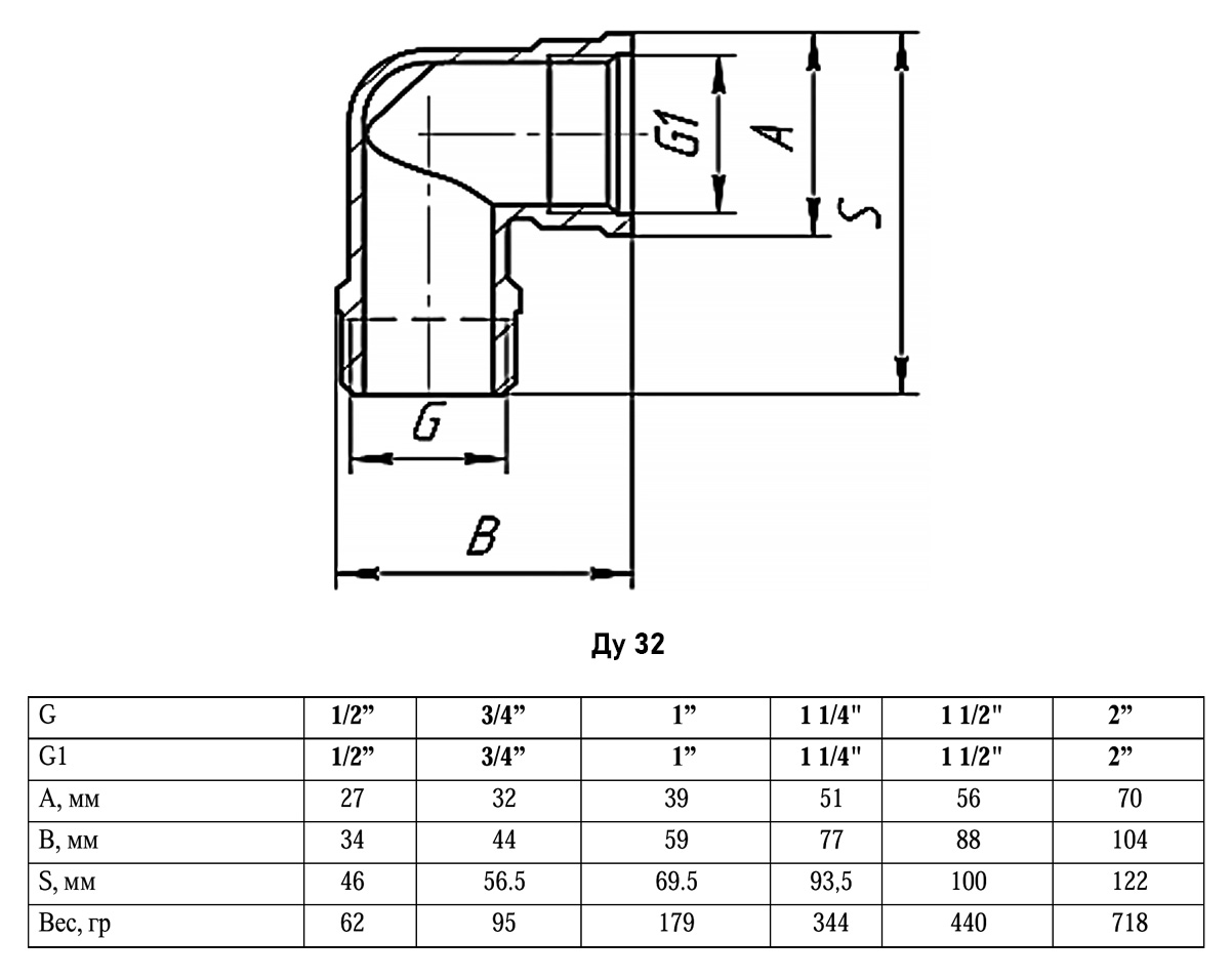 Угольник переходной 90 градусов VALFEX VF.092 ВР-НР 1 1/4" Ду 32 Ру 40 латунный