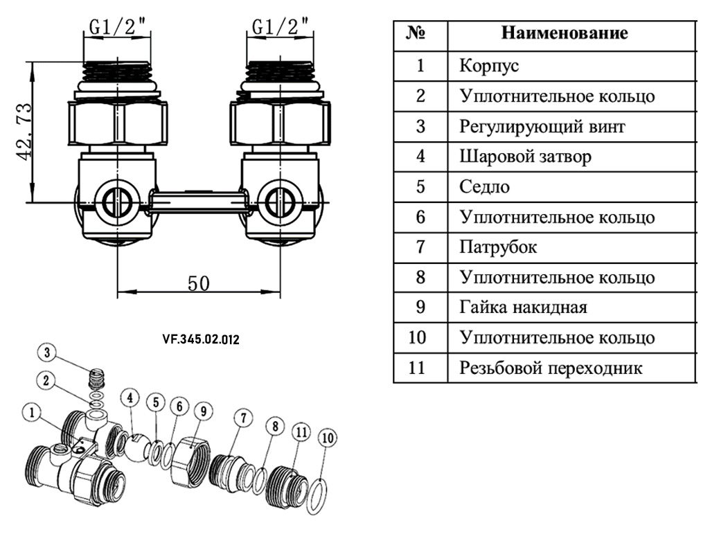 Узел нижнего подключения VALFEX VF.345.02.012 НР 1/2x3/4" DN 15x20 PN 10 угловой