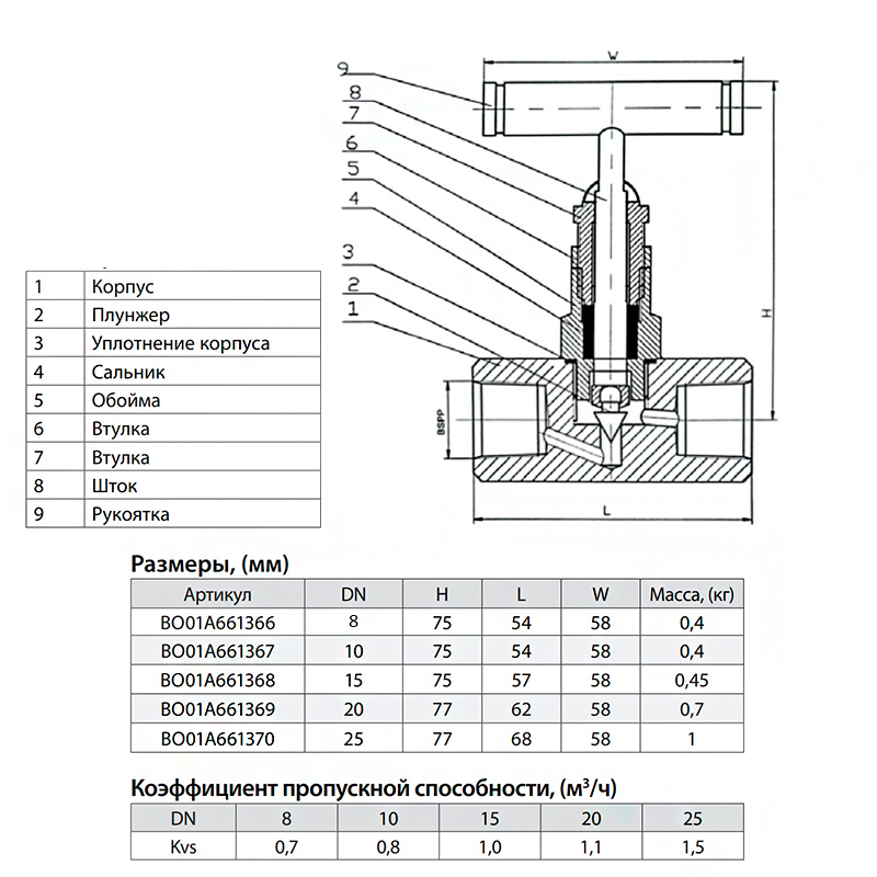 Коэффициент пропускной способности1 м3/ч