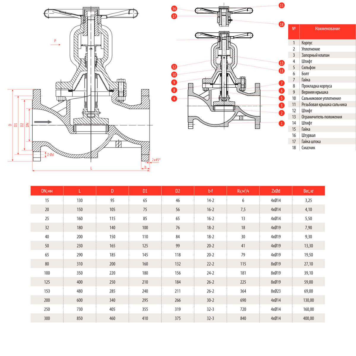 Вентиль запорный сильфонный РАШВОРК 334 Ду250 Ру16 чугунный фланцевый