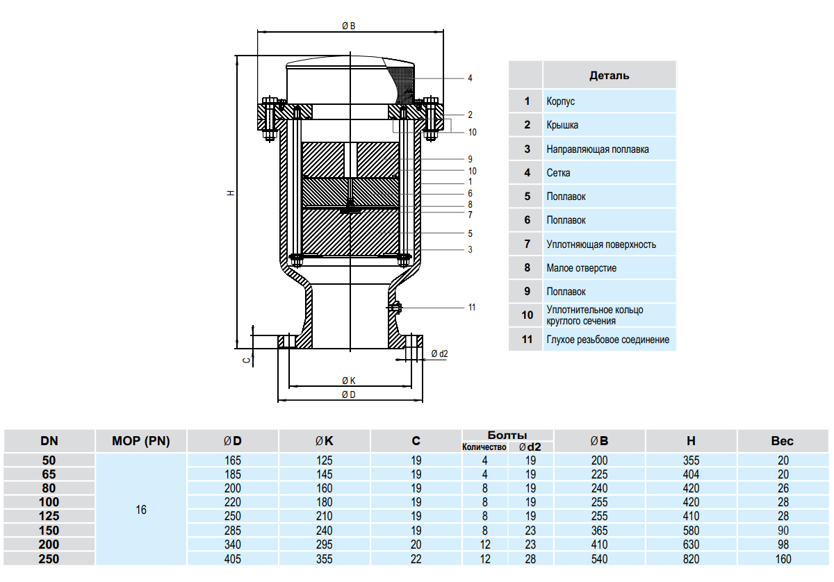 Воздушный вантуз Hawle 9842 DN 150 PN16 трехступенчатый динамический