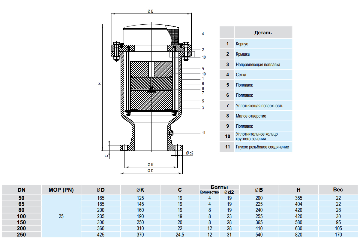 Воздушный вантуз Hawle 9842 DN 150 PN25 трехступенчатый динамический