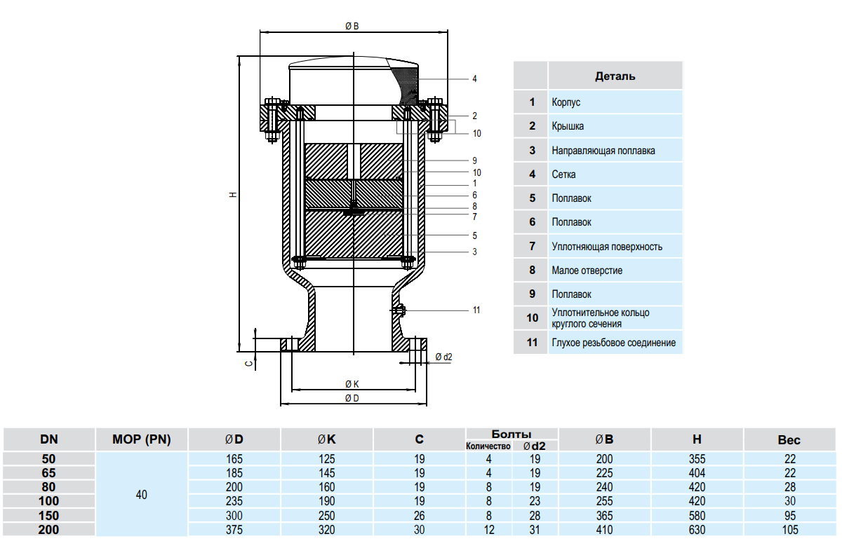 Воздушный вантуз Hawle 9842 DN 80 PN40 трехступенчатый динамический