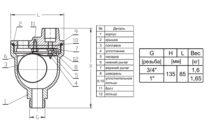 Сфера примененияВпуск и выпуск воздуха из сетей передачи питьевой, технической (очищенной от взвесей) воды и других химически нейтральных жидкостей