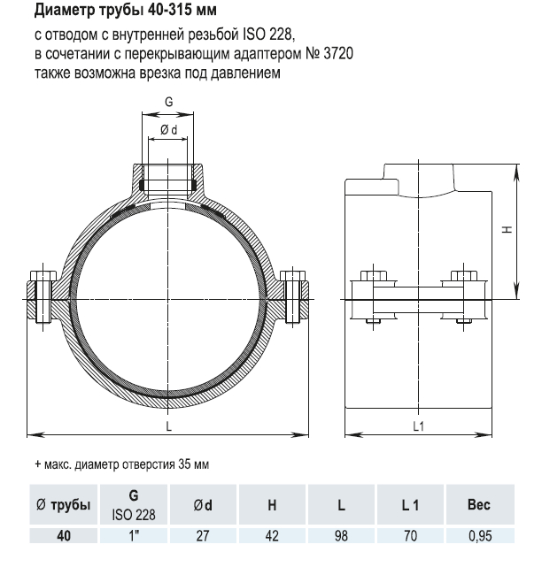 Врезной хомут HAWLE 5250 DN 40 PN 16 системы HAKU с отводом с внутренней резьбой 1"
