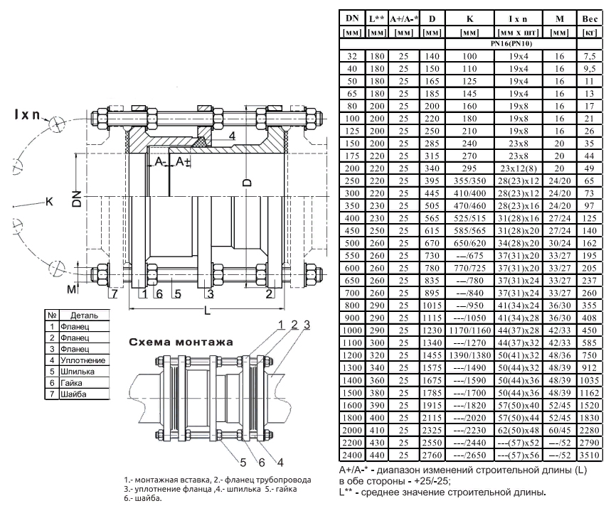 Вставка монтажная JAFAR 9311 DN 2400 PN 10