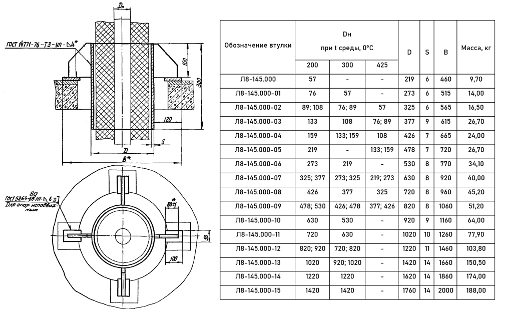 Втулка Л8-145.000-12 для прохода через перекрытие