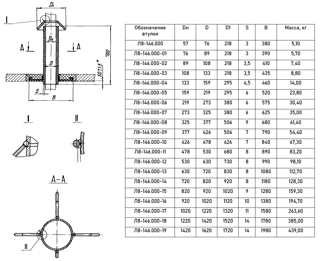 Втулка Л8-146.000-18 с колпаком для прохода через крышу