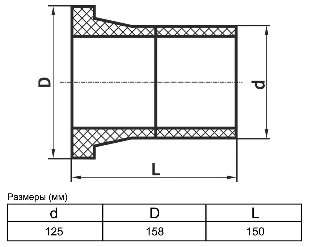 Втулка 125 мм SDR21 ПЭ100 удлиненная сварная ПНД